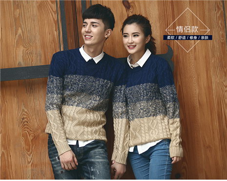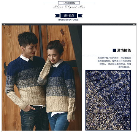 秋季新品韩版撞色情侣款毛衣